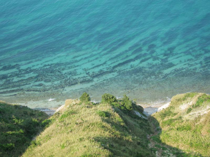 di Focara , in fondo a cui si trova l’ isolata spiaggetta